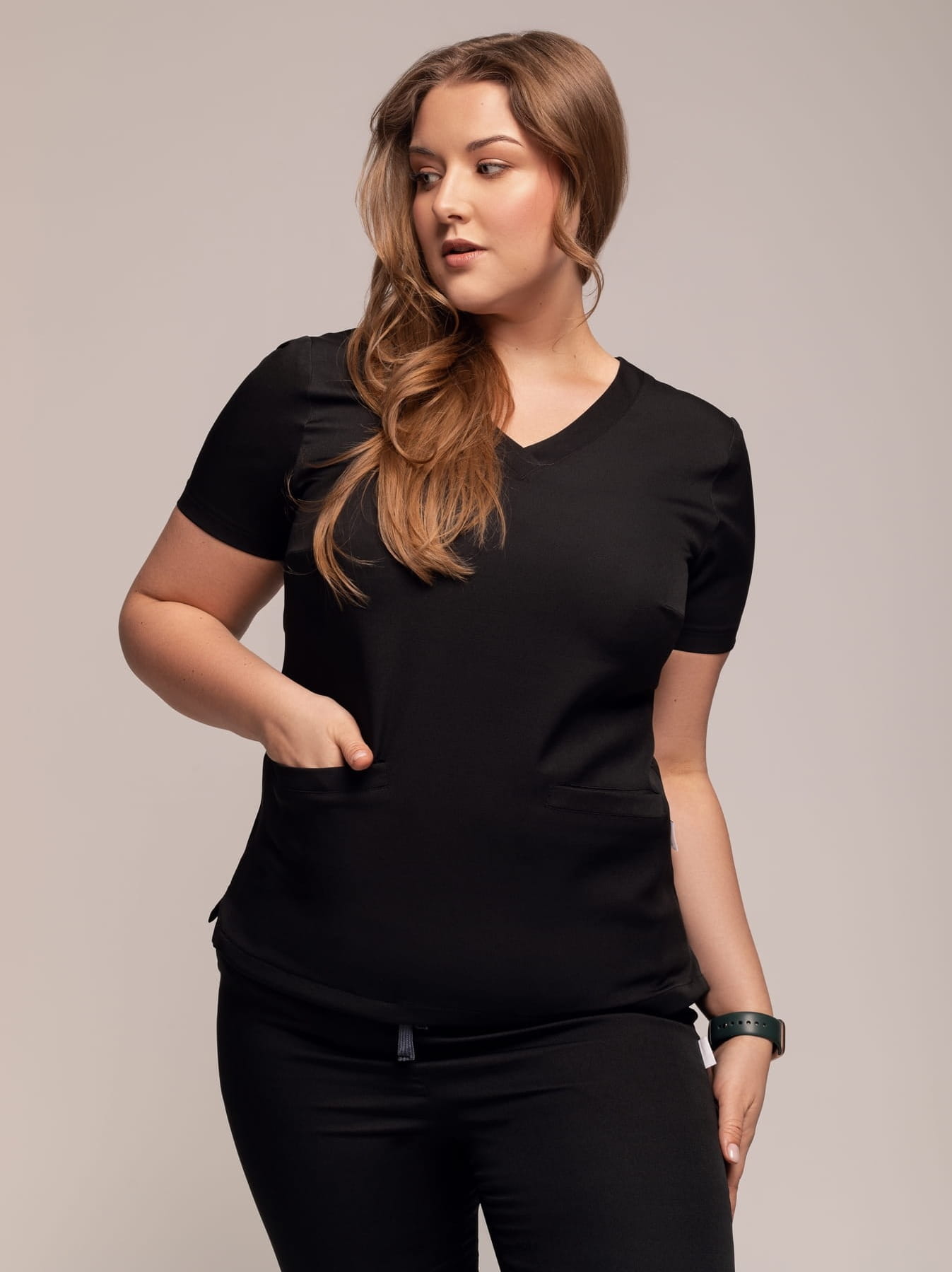 Bluza medyczna z kolekcji premium została uszyta z oddychającego i elastycznego materiału. W dotyku można wyczuć mięsisty materiał, który sprawia, że produkt jeszcze bardziej zyskuje na jakości. Posiada lekko taliowany krój, dekolt w kształcie v-neck i dwie pojemne przednie kieszenie. Idealnie sprawdzi się zarówno w letnich, jak i jesiennych stylizacjach.