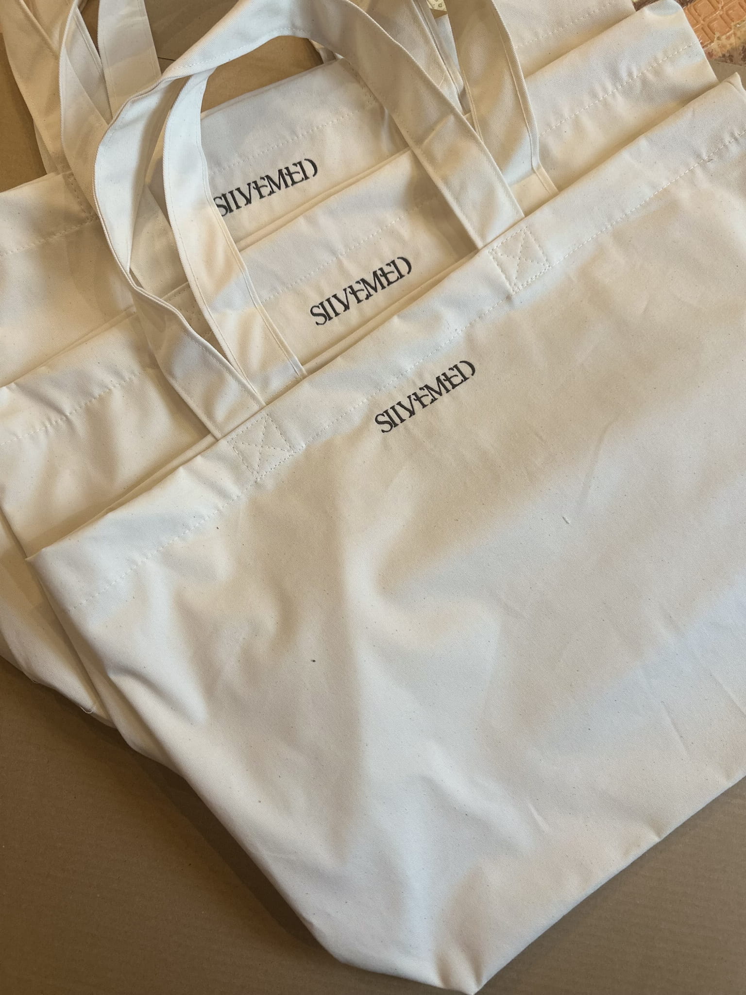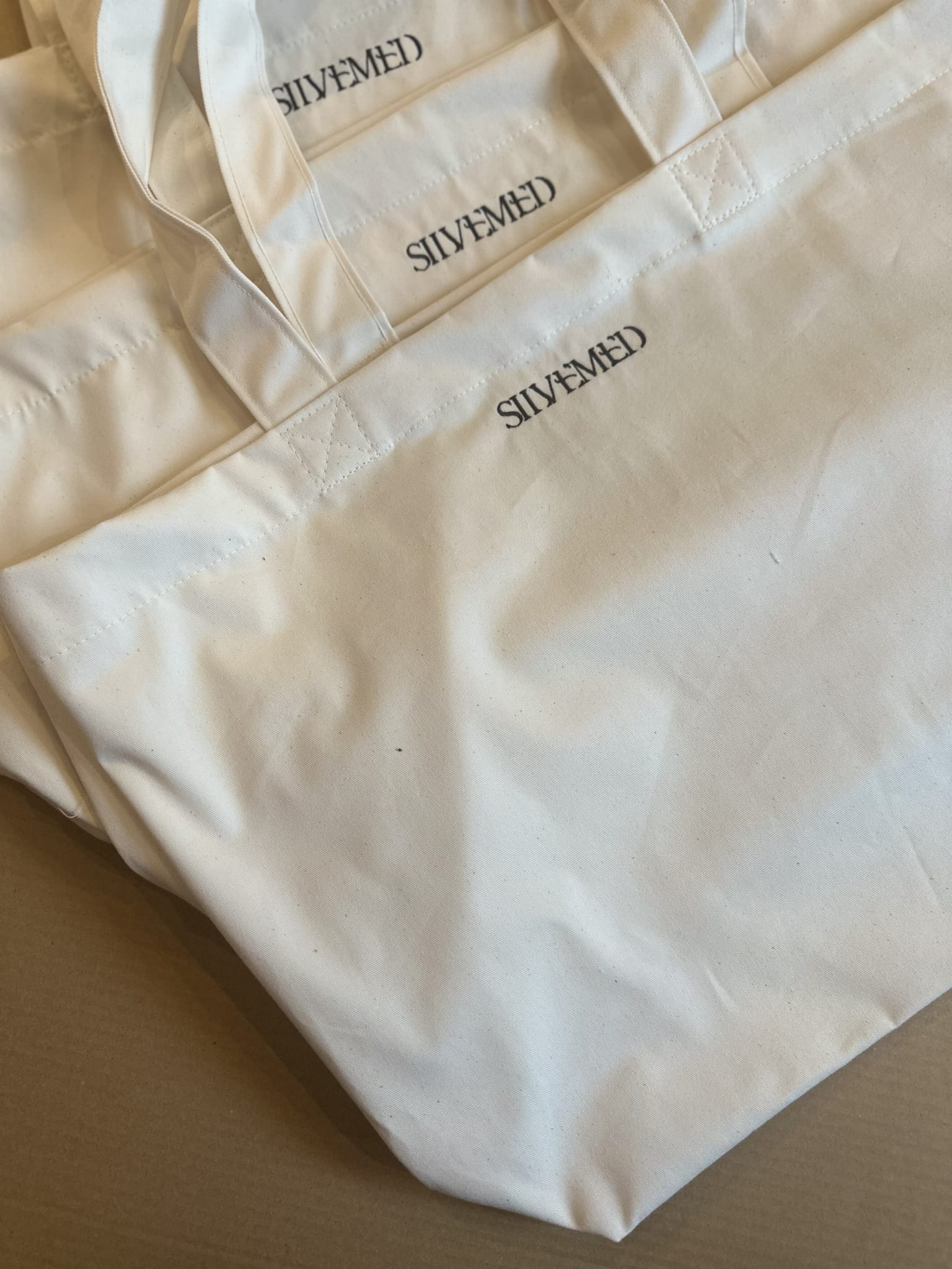 Na torbie wykonany jest czarny haft z logiem Silvemed o wymiarach 8cm x 1,5 cm